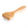 Mit der vorderen Holzspitze können Schuhrillen gesäubert werden, mit der hinteren, abgeschrägten Kante die Sohlen. Die kräftigen Pflanzenfasern reinigen den Schuh vom groben Schmutz vor dem Eincremen. In den Größen 14 cm oder 19,5 cm erhältlich.