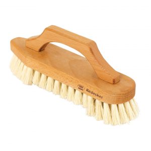 Scheuerbürste mit Bügelgriff aus geöltem Buchenholz, Größe: 22 cm. In den Ausführungen mit Borsten aus Fibre-Fasern oder Union-Fasermischung erhältlich.