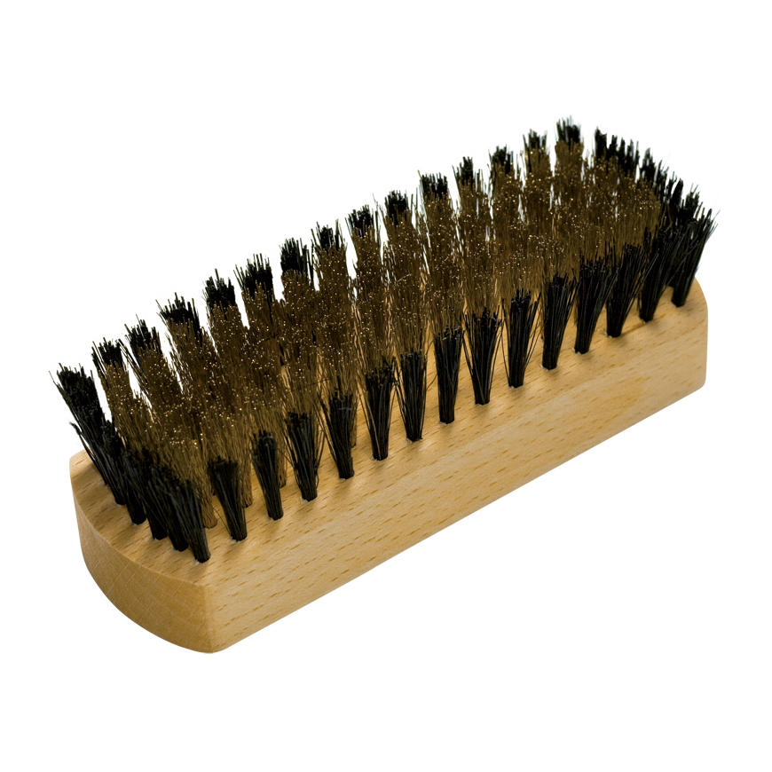 Wildlederbürste aus geöltem Buchenholz, Messing mit Borstenrand, Größe: 12 cm.