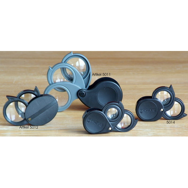 Schalenlupe (MP 30) größere Linse, drei Schalen mit je 5-facher Vergrößerung, Maximale Vergrößerung somit 15-fach.
