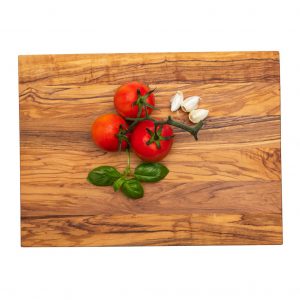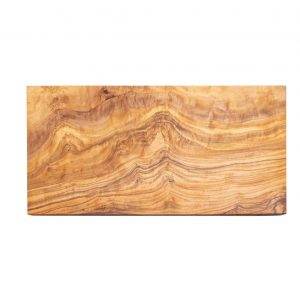 Rechteckiges Brett aus Olivenholz. Erhältlich in den Größen 11,5 x 25 cm, 13 x 22 cm, 14 x 30 cm, 15,5 x 35 cm oder 30 x 40 cm.