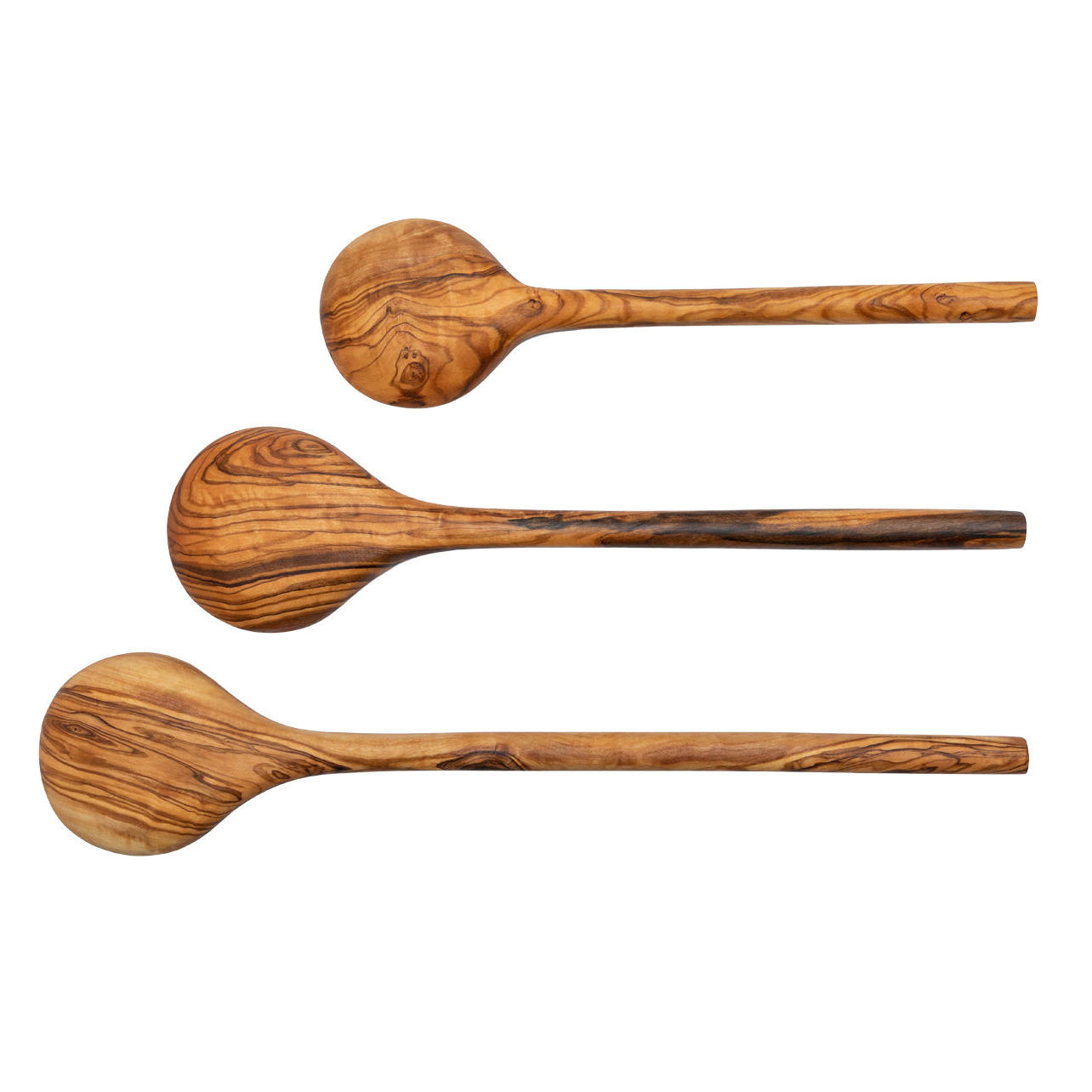 Kochlöffel rund aus Olivenholz. Erhältlich in den Größen 25 cm, 30 cm und 35 cm.