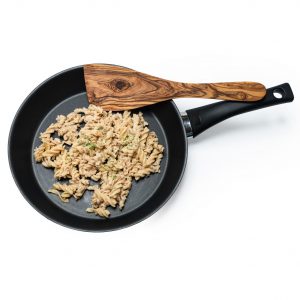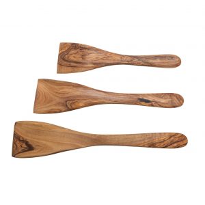 Breiter Pfannenwender aus Olivenholz. In den Größen 25 cm, 30 cm oder 35 cm erhältlich.